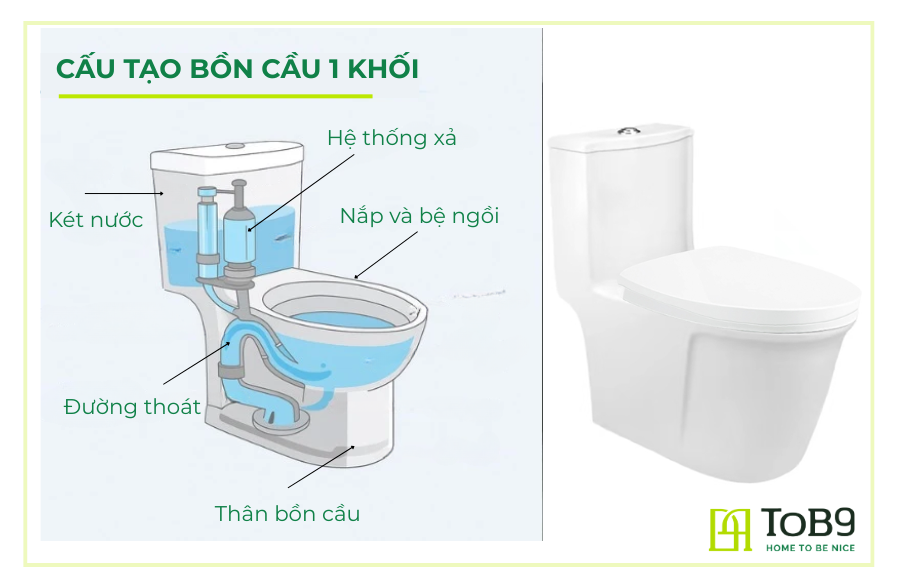 Trên đây là những thông tin chi tiết về bồn cầu 1 khối mà ToB9 Home muốn chia sẻ đến bạn, giúp bạn hiểu rõ hơn về cấu tạo, ưu nhược điểm cũng như cách lựa chọn sản phẩm phù hợp. Nếu bạn đang tìm kiếm một thiết bị vệ sinh vừa thẩm mỹ, vừa tiện nghi, lại đảm bảo độ bền và dễ dàng vệ sinh, thì bồn cầu 1 khối chính là lựa chọn lý tưởng dành cho bạn.