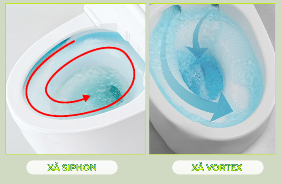 • Công nghệ xả: là yếu tố ảnh hưởng trực tiếp đến hiệu quả làm sạch và mức độ tiết kiệm nước, nên khi chọn cần ưu tiên các công nghệ như xả siphon, xả vortex giúp tăng lực cuốn trôi chất thải.