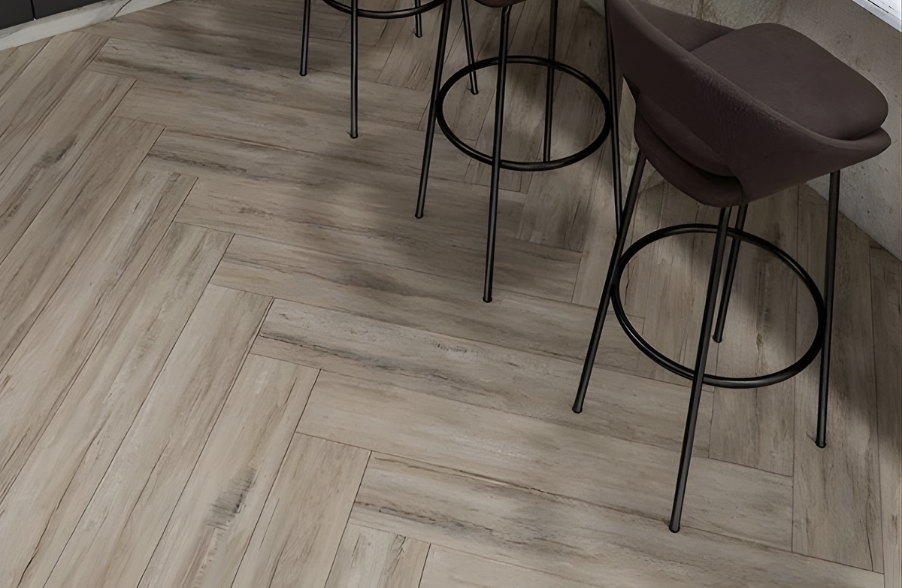 • Lát xương cá: Gạch xếp chéo góc 90°, hình chữ V tạo điểm nhấn thẩm mỹ hiện đại, sang trọng, mang hơi hướng kiến trúc Châu Âu. Kiểu lát thường được sử dụng cho khu vực phòng khách, homestay, quán café, shop thời trang, nhà hàng sang trọng.