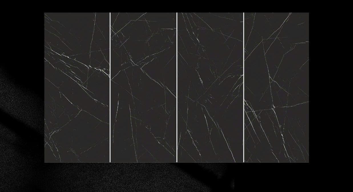 Gạch đá nung kết 1200x2700mm Black Knight sở hữu tone đen huyền bí kết hợp hiệu ứng vân đá kỹ thuật số sắc nét mang lại vẻ sang trọng, mạnh mẽ và hiện đại. Bề mặt lớn với bốn mặt xếp ngẫu nhiên giúp các thiết kế có sự linh hoạt, tạo hiệu ứng không gian đa dạng và không bị trùng lặp. Đường vân sống động, sắc nét, phù hợp cho các không gian cần điểm nhấn độc đáo và cá tính mạnh.