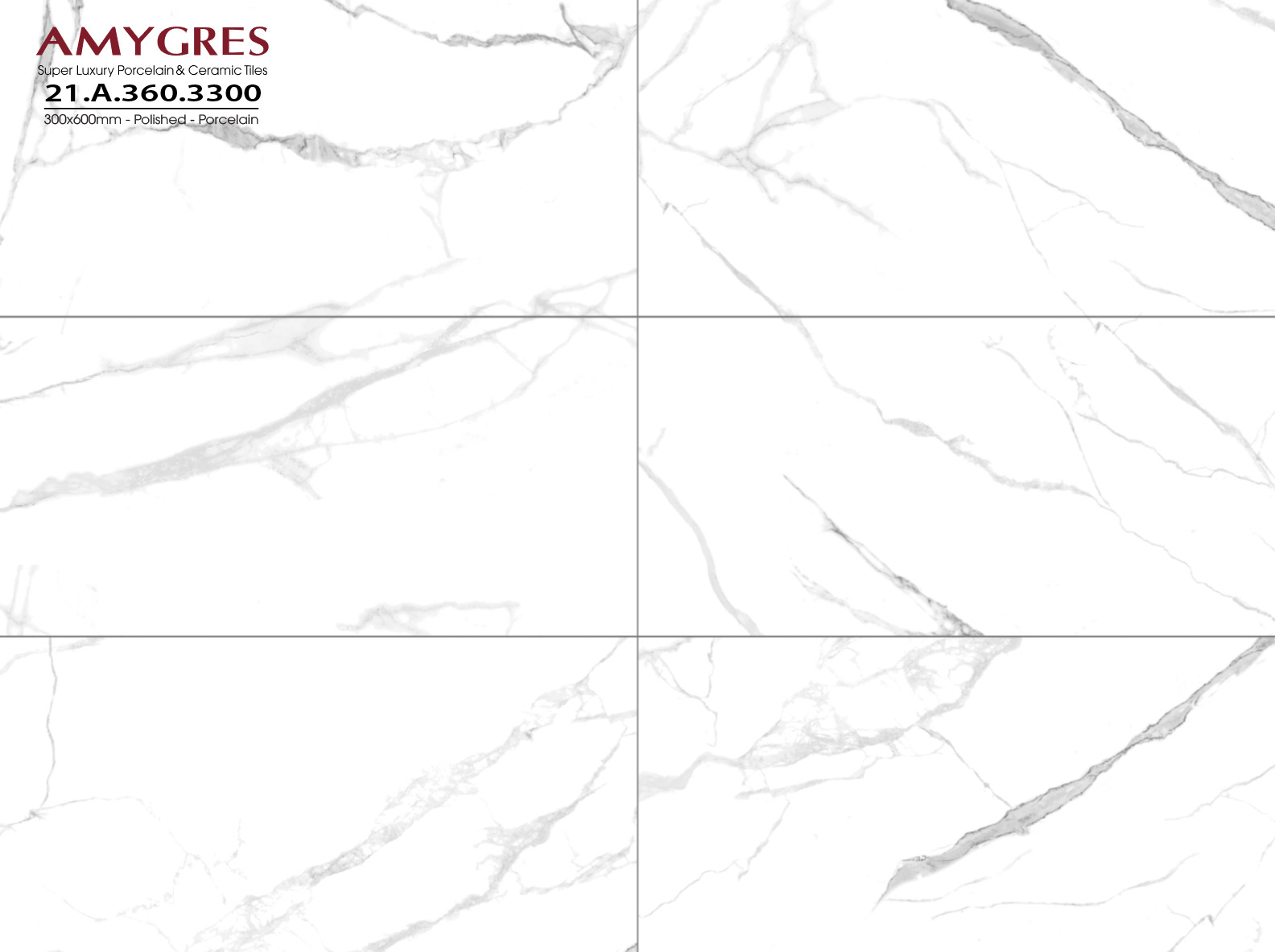 Gạch ốp lát Á Mỹ 300x600mm 3300 sử dụng các vân đá màu xám khói uốn lượn nhẹ nhàng trên nền gạch trắng mang lại vẻ đẹp trang nhã, sang trọng; sản phẩm phù hợp ứng dụng cho các khu vực mặt tiền, lát sàn, ốp trang trí,…