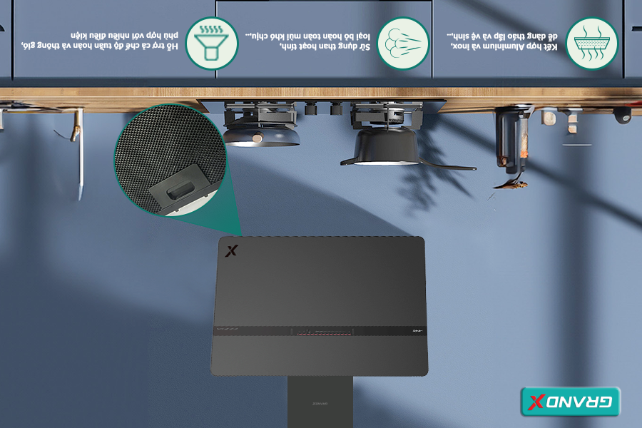 Lưới lọc của hút mùi GX H70S86G được thiết kế thông minh với chất liệu kết hợp giữa Aluminium và inox, vừa bền bỉ vừa dễ dàng tháo lắp để vệ sinh. Cấu trúc này không chỉ giữ lại dầu mỡ hiệu quả mà còn giúp giảm tiếng ồn đáng kể trong quá trình hoạt động, mang lại trải nghiệm sử dụng êm ái hơn.